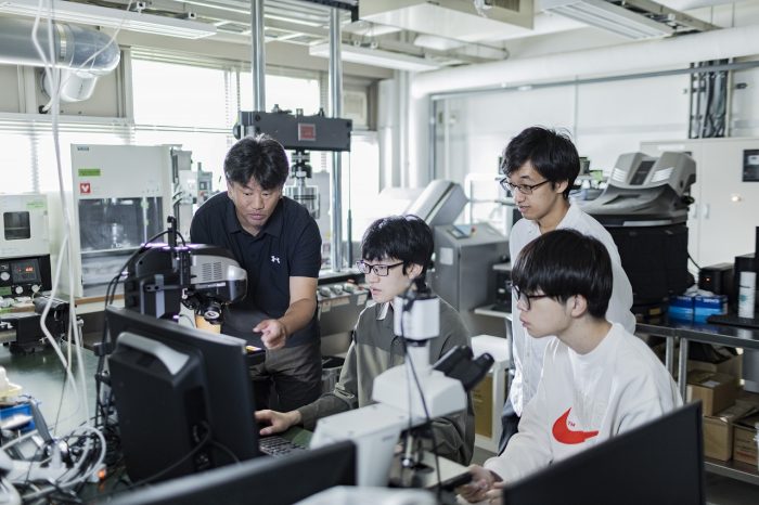 本研究室では、先端複合材料を対象に、その構造と力学特性の関係を明らかにする研究を行っています。そのため研究室に在籍する学生には、現象を自らの手で確かめ、得られた結果を根気強く考察する姿勢を求めています。困難に直面しても試行錯誤を重ね、最後までやり遂げる粘り強さを重視しています。